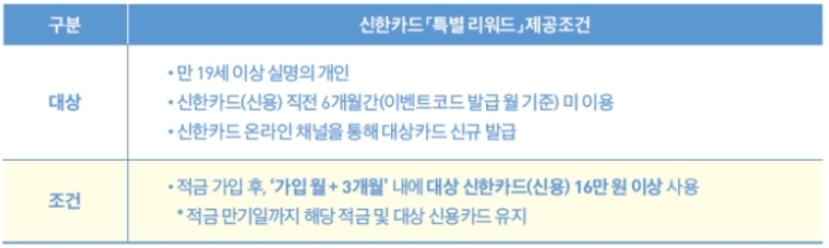 아쉽지만 현재 신한카드를 주로 사용하고 계신 분들은 해당이 안 되시고, 신용카드가 없거나 최근 6개월 이상 신한카드를 사용하지 않으신 분들이 해당됩니다. 6월 30일까지 경품 이벤트도 진행하고 있으니 참고하시길 바랍니다.