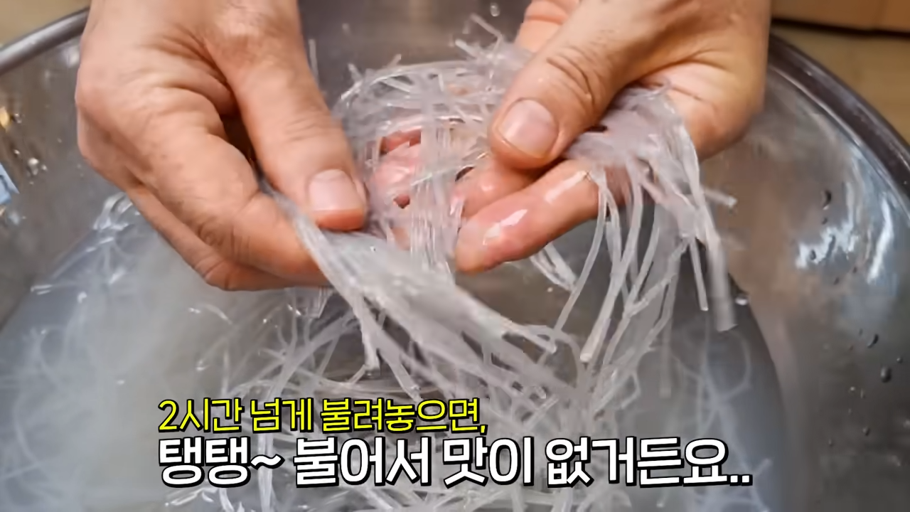 📌한시간한 시간 이상 담그게 되면 당면이 물러지게 됩니다 한 시간만 담가서 사용해주세요 한 시간 불린 당면을 건져서 물기를 빼주세요.