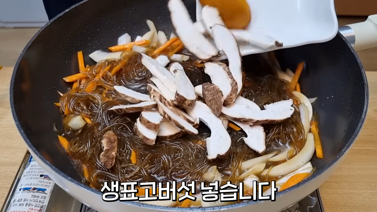 📌생표고버섯,흑설탕2스푼,다진마늘,1스푼 볶아놓은 당면에 넣고 섞어줍니다.