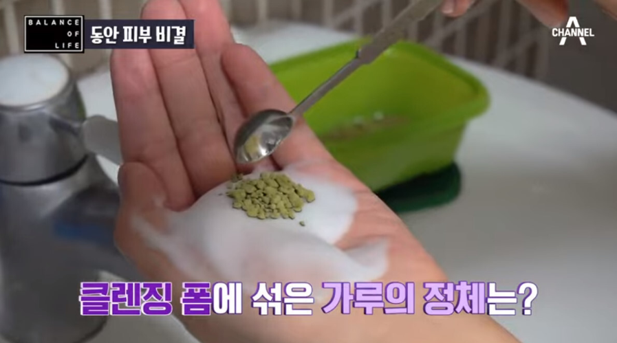 팥가루 세안법은 팥가루 2: 녹차 가루 1의 비율로 섞어주고 소량의 폼클렌징과 함께 세안해주면 됩니다.