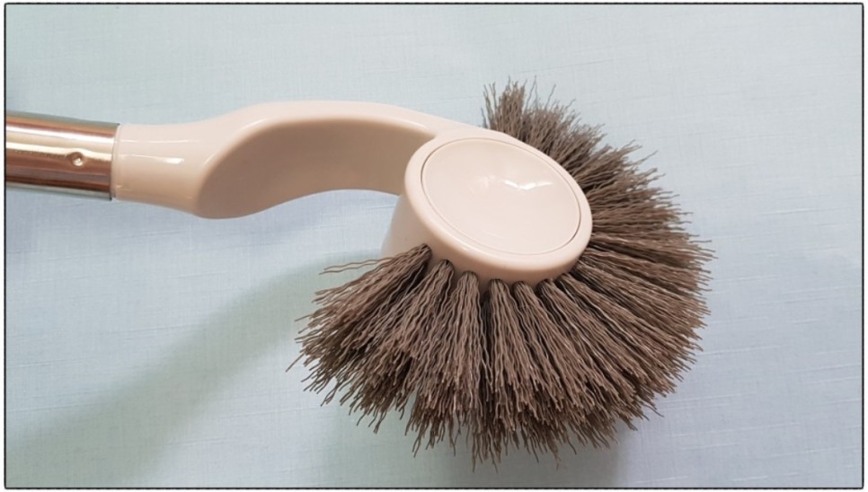기존 변기솔 디자인을 반형으로 변경하고 솔의 길이도 조금 더 길게 변형한 신상 제품인데요. 이 제품은 변기 안의 틈새 공간까지 솔이 닿았고 그 안의 찌든 더러움을 깨끗하게 씻어낼 수 있습니다.